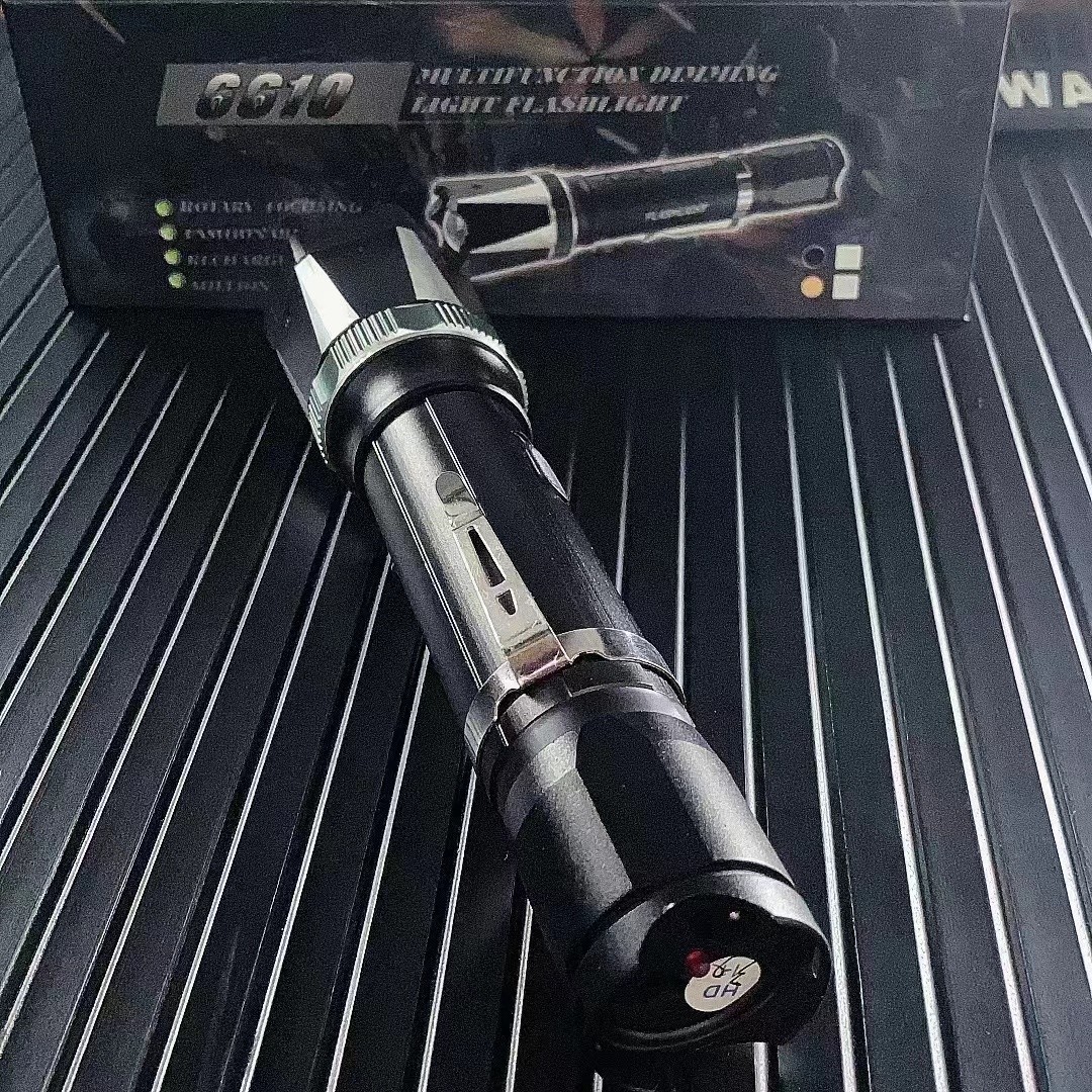 黑鹰6610电棍外壳采用航空钛合金制造,保证产品的抗摔性和散热性。带有LED强光照明功能,凸透镜与LED结合,可变焦、可爆闪。头部有莲花攻击头,在不开电击模式下,也能对目标打击。