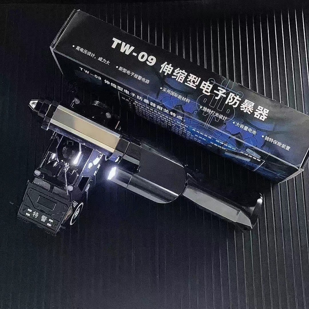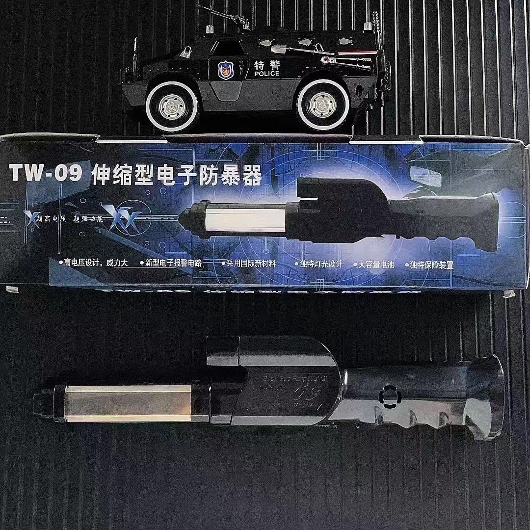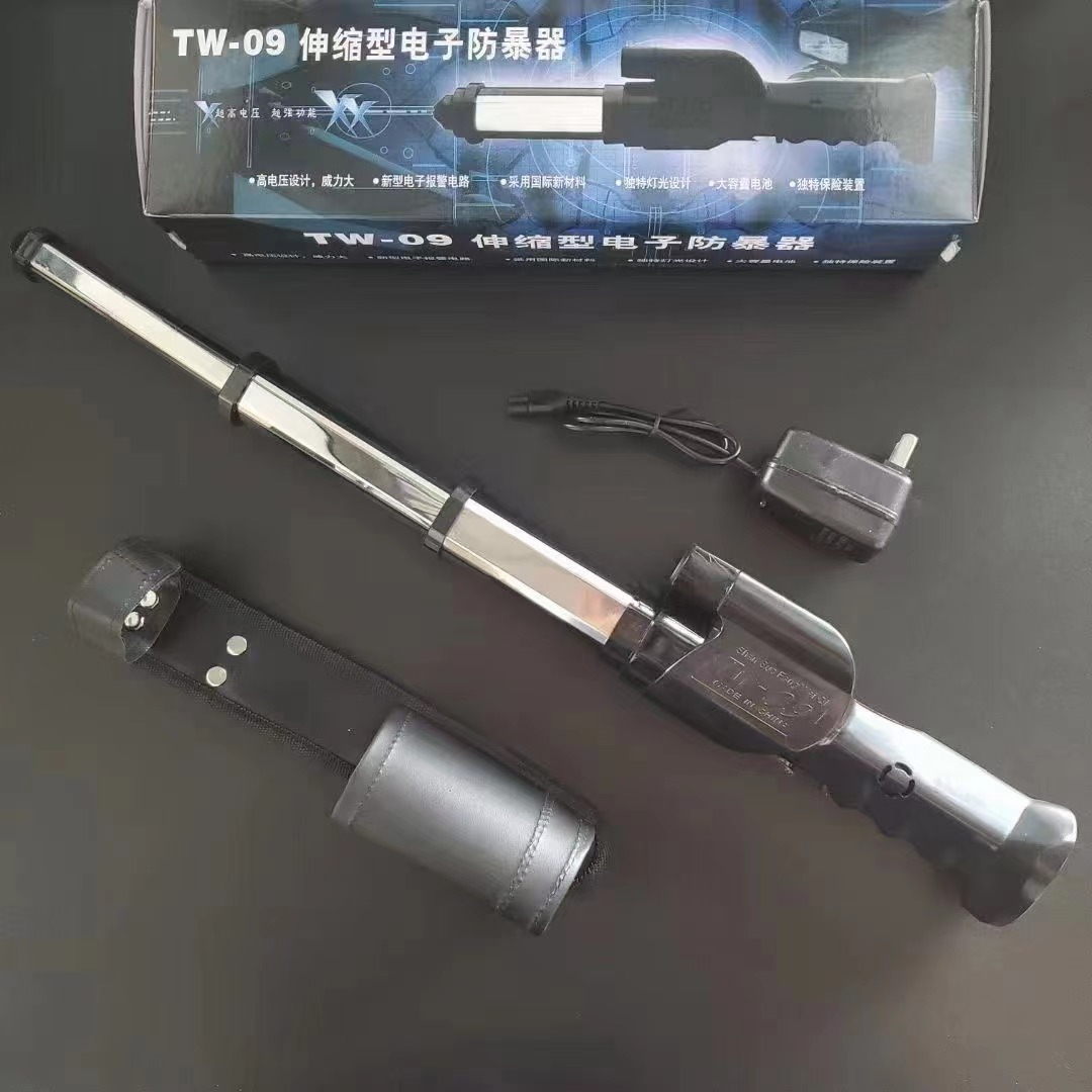 TW-09型高压伸缩电棍采用国际先进技术,中美合作制造,在以往常规电警棍的基础上,采用 念,把电击部分改为伸缩型,大大提高了电击能量。 加大了电击范围,可最大限度地达到防身自卫 外壳采用强度最高的聚碳酸脂制造,可承受强力撞击。 但不能用力敲打,120db高分贝报警,使用 国新型电子报警电路制成。 产品电源采用1200mah大容量电池,照明和电击时间比普通伸缩警棍长 产品外形独特,外表光洁,控制系统独有保险装置,使用更安全,是居家外出,防身自卫的最佳产品