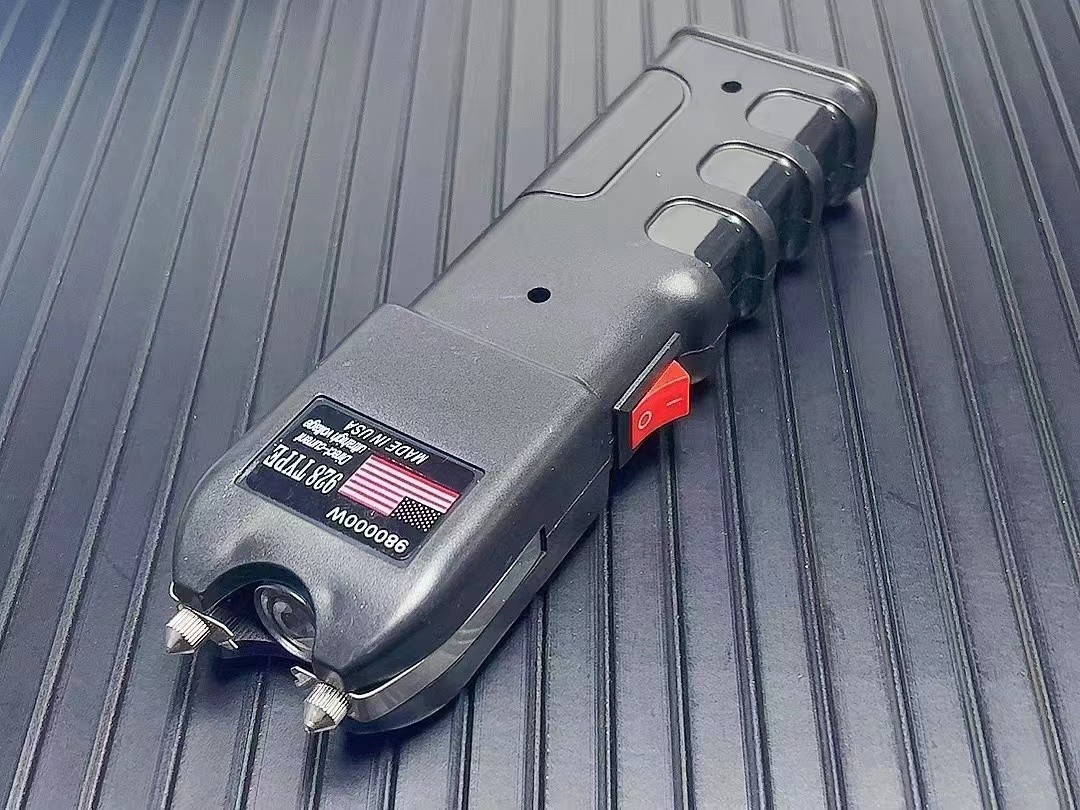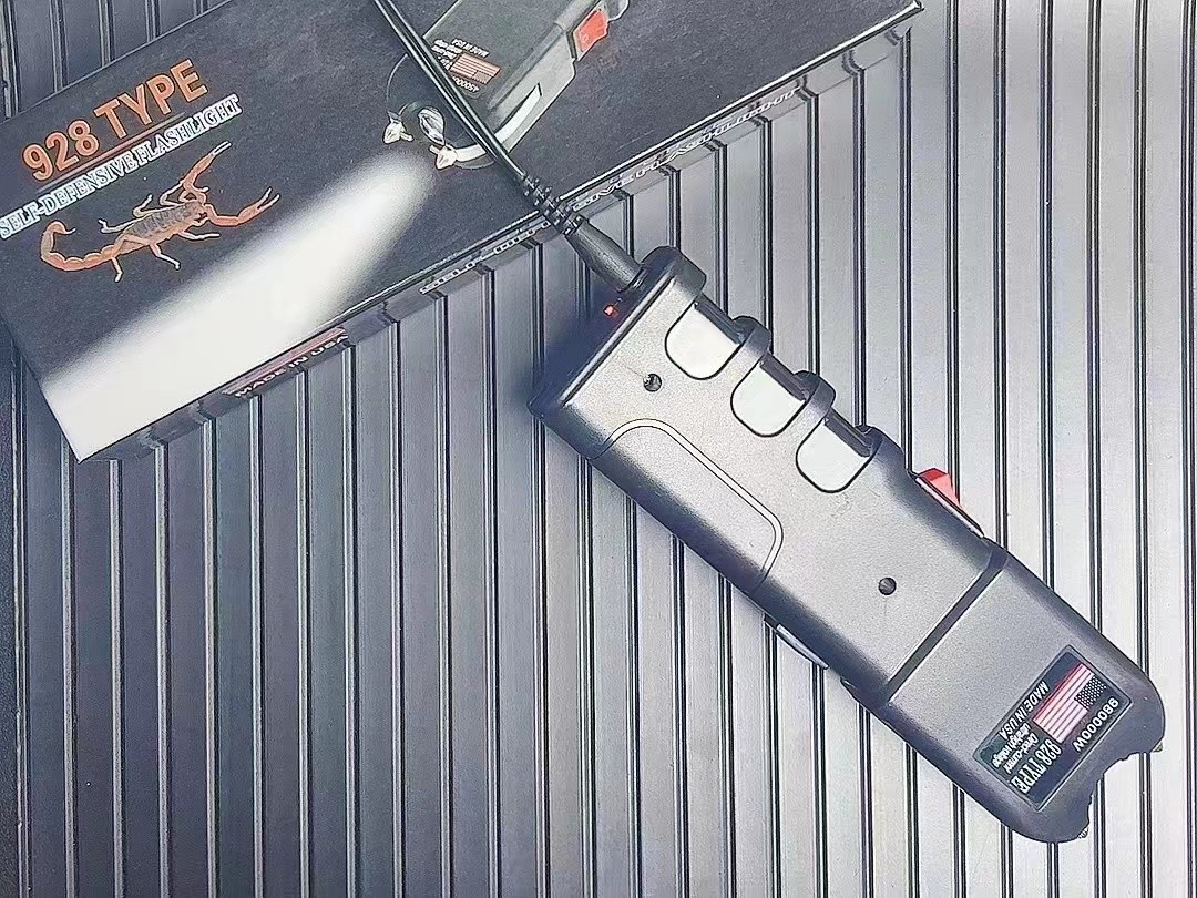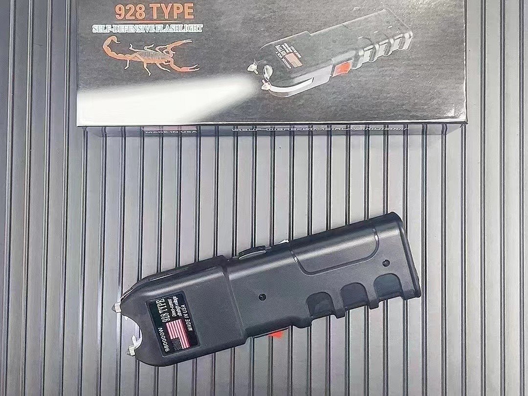这是范冰冰和成龙大哥电影《绝地逃亡》里出现的高压电击器型号。外形霸气,手柄模型符合人体工学设计,非常贴合手部,头部攻击针可穿透衣服电击, 有LED强光照明功能。第二代的928型电击器,工艺升级:采用磨砂材质,使触感柔和舒适。按钮升级:提高按压流畅度,加长使用寿命。