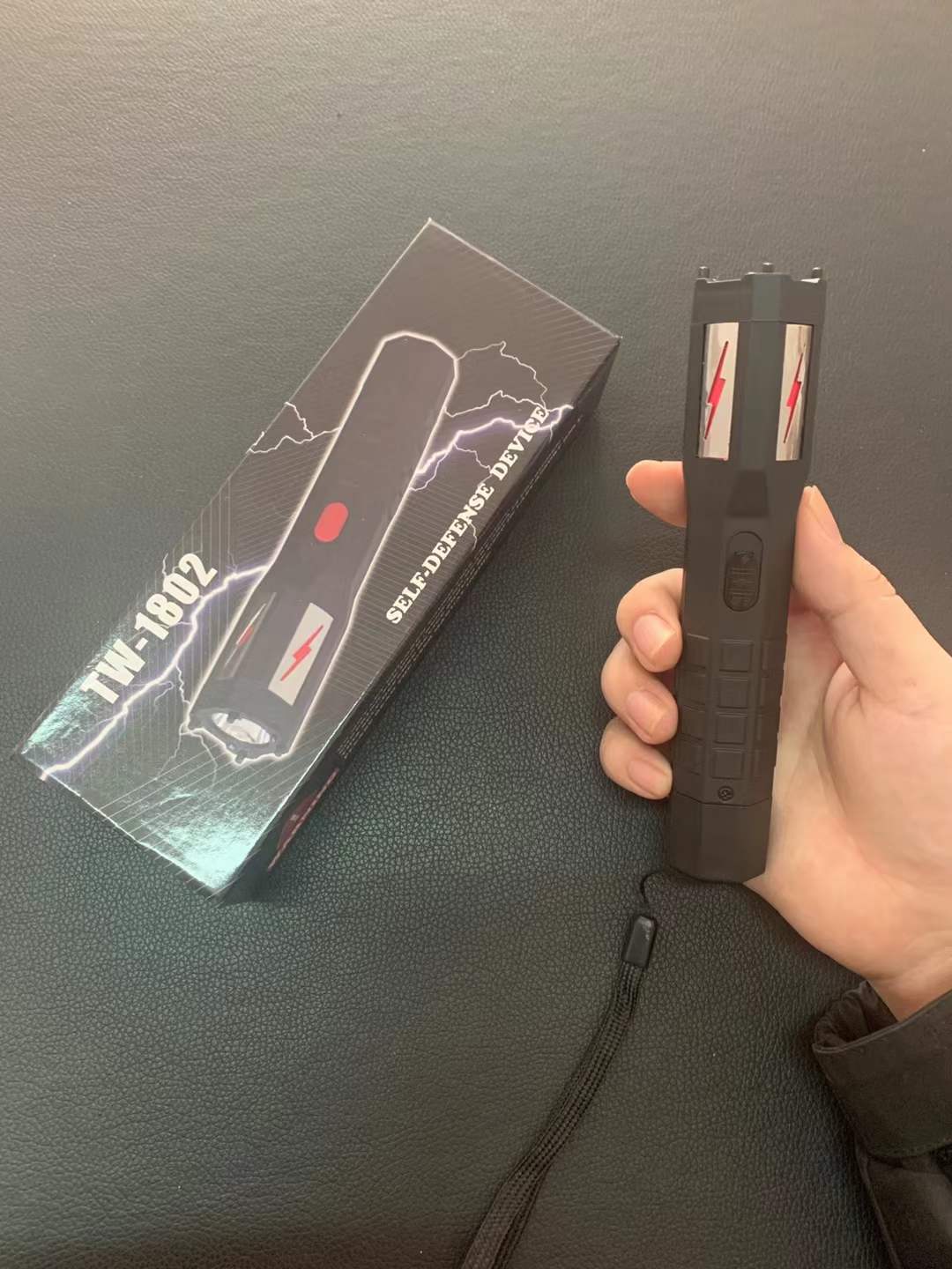 2020年最新款TW-1802型神火电棍,四个攻击针可砸玻璃自救,可近身实战,棱形防滑把手 感非常不错,带LED强光灯,美国进口Q5灯珠,有三档调光:弱光、强光、爆闪。