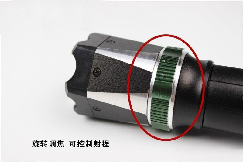 1、尾部总开关打开,中间长方形开关往前推,是照明档位,反复几次可以强光、弱光、爆闪,旋转调焦环可以聚光。