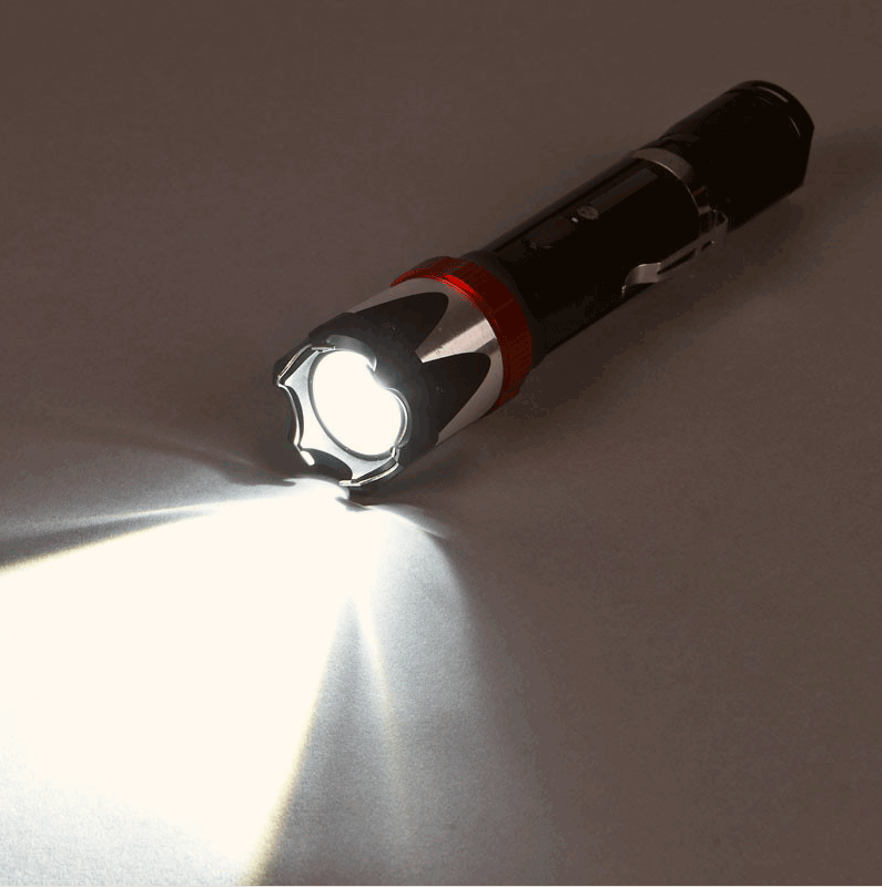 黑鹰6610电棍外壳采用航空钛合金制造,保证产品的抗摔性和散热性。带有LED强光照明功能,凸透镜与LED结合,可变焦、可爆闪。头部有莲花攻击头,在不开电击模式下,也能对目标打击。