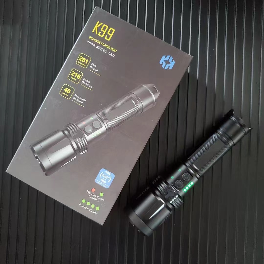 可以说K99开启了电棍的新时代,重新定义了电棍,最新采用了26350锂电池,告别了18650时代,具备电击时自动开始照明、电量显示、USB充电功能,外壳经过阳极氧化处理,使用过程中不会掉漆、掉色。
