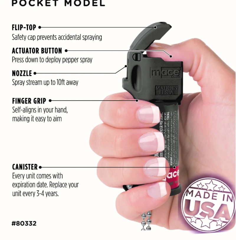 它是梅西系列产品其中一个最受欢迎的防身喷雾剂,梅西口袋防狼喷雾剂(OC-UV)含有最大强度配方的OC辣椒素和看不见的UV紫外线染料,能导致目标落泪不止、呼吸急促,使攻击者晕头转向。梅西三重功效的好处是:你不必直接喷你在攻击者脸上,即使你错误喷在他们的胸部,催泪瓦斯也将立即开始影响到他们。梅西口袋型采用了梅西原始的握把设计可以安全灵活的防卫。顶部翻盖式安全盖,可以防止意外喷射,手指柄更容易瞄准。另外,其小巧的尺寸和钥匙链使其非常适合挂在您的钥匙或进出门之前快速塞进口袋或钱包里。梅西最强力配方的强效,可以使你在受到威胁时放心地使用这款喷雾来保护自己,它的辣椒素浓度最高可以达到10%OC,而且含有可以帮助警察识别歹徒的紫外线染剂,从而使你在受到威胁时可以放心地使用这款喷雾来保护自己。对准目标喷,然后逃跑就可以了。