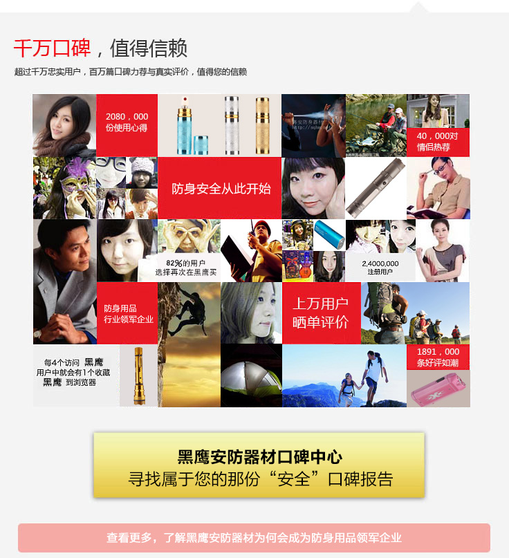 作为防身用品供应商,我们提供专业的个人防卫产品的咨询和销售服务,产品包括个人防身电击棍、防狼喷雾,以及高分贝防身警报器等,这些产品能使您在个人人身安全受到威胁的情况下解决警务人员、家人和朋友暂时无法到场提供及时帮助和救援的临时应对策略。产品适用范围广泛,适合有车一族的随车携带、出租车司机、白领的早班晚班的随身携带,以及任何经常单独出行于社会人员较为复杂陌生环境的人士。